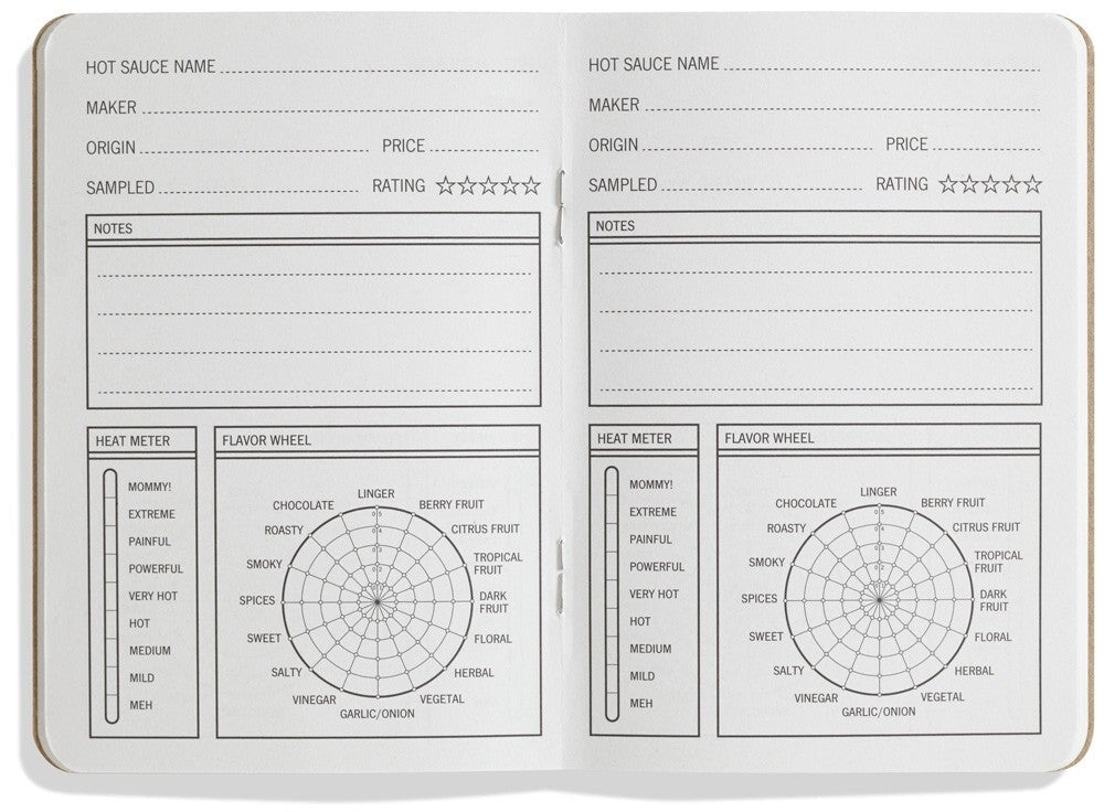 33 Hot Sauces is a pocket-sized hot sauce journal designed for ease of use. It’s tough to hold a notepad in one hand, a pencil in the other, and have another hand left for a taco. Taking notes with 33 Hot Sauces is as simple as checking a few boxes and entering a few basic facts.